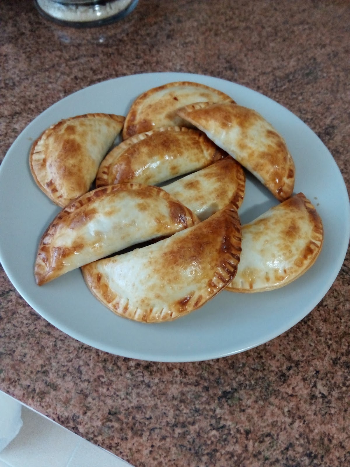 Ponemos un vaso con un poco de agua y vamos mojando con el dedo los borde de las obleas y las doblamos haciendo la forma de la empanadilla.