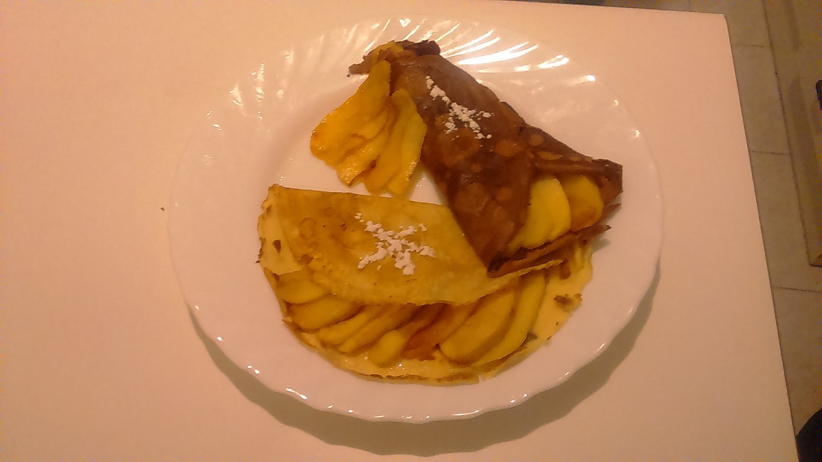 - Rellenamos las filloas con la manzana frita, y las enrollamos.