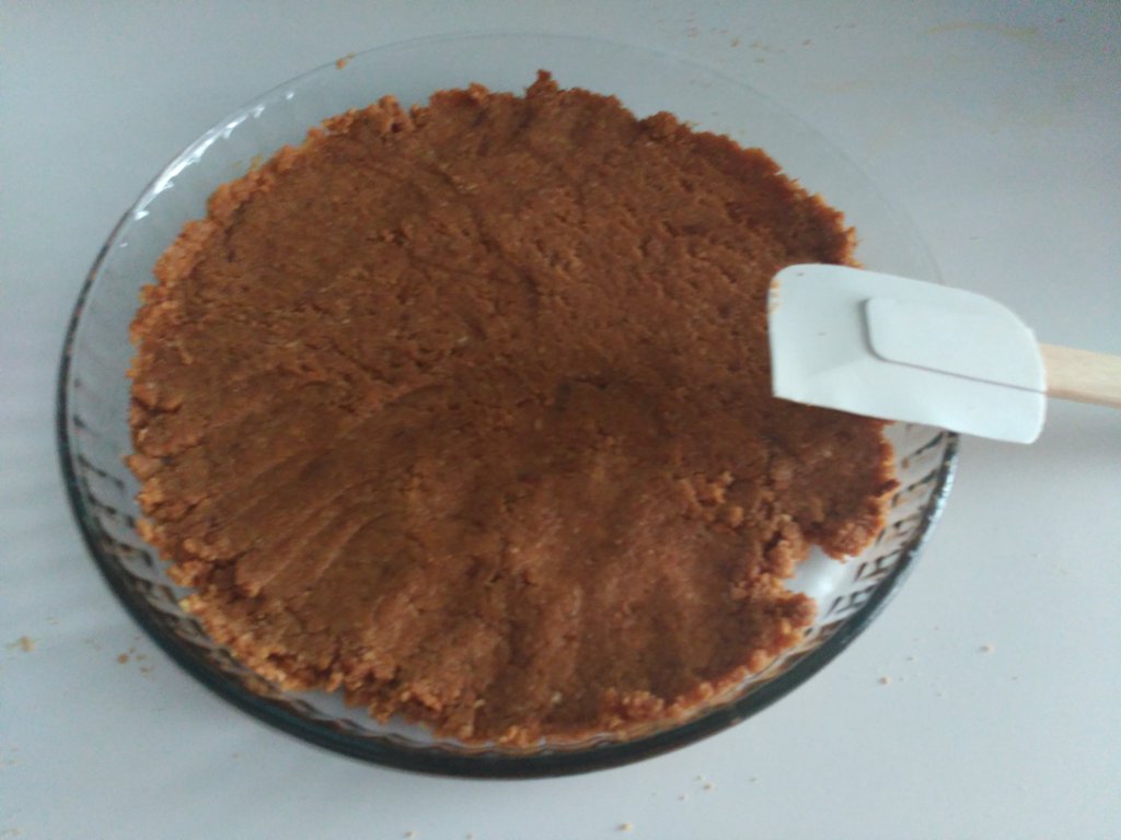 - En un bol, machacamos las galletas hasta que queden trituradas, para después añadir la mantequilla y lo removemos hasta que se mezcle todo. Tras esto extendemos toda la galleta sobre el bol haciendo la base de la tarta y lo dejamos enfriar.