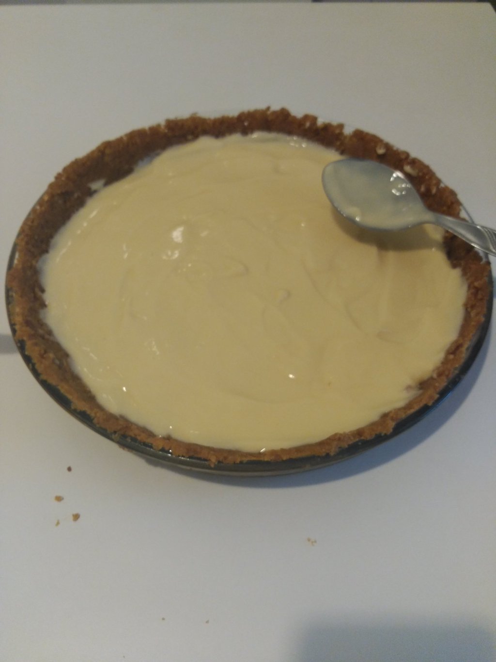 - Para la segunda capa, echamos las cuatro natillas sobre la base de galleta.