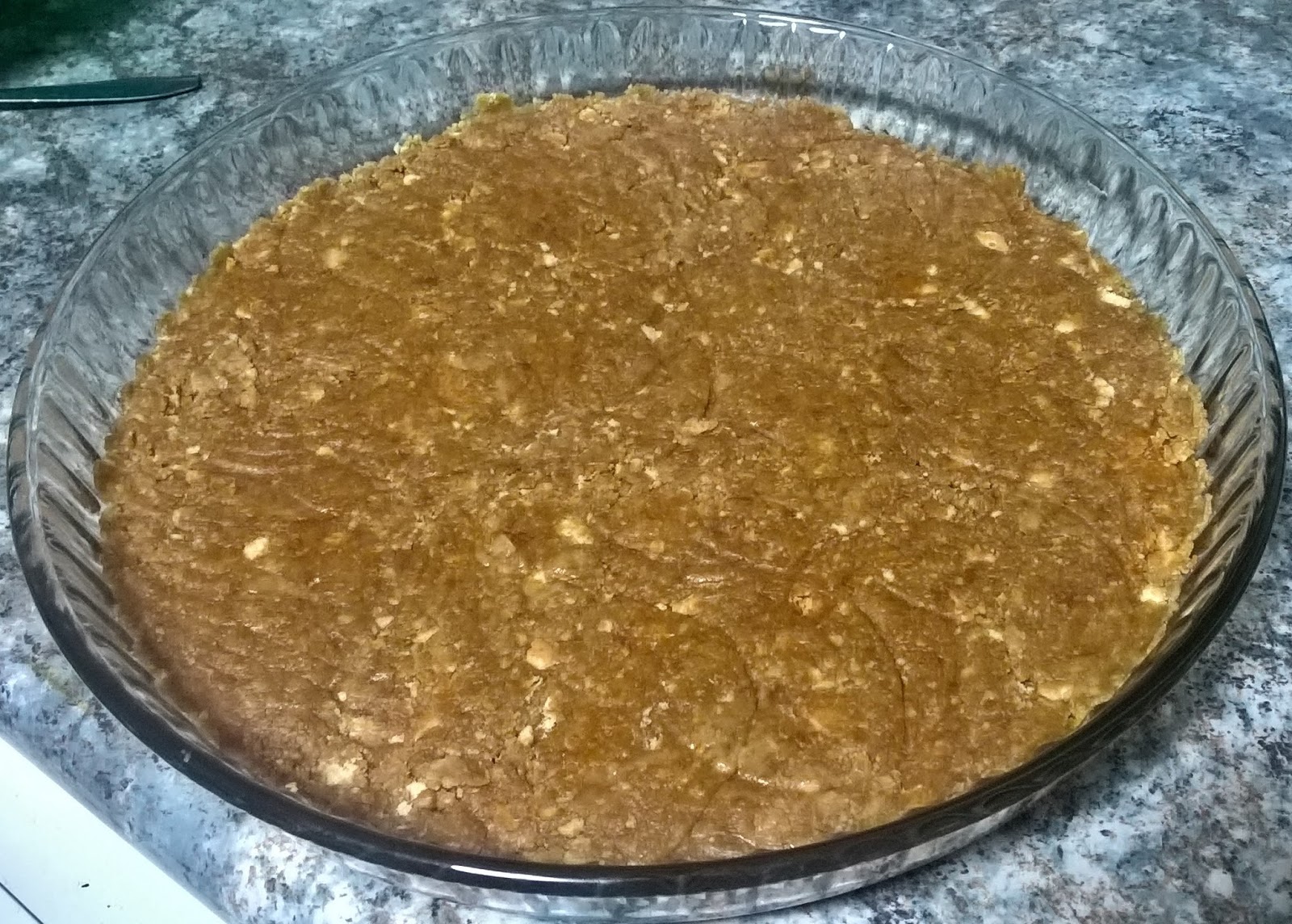 • Por un lado, derretimos la mantequilla en el microondas, y por otro trituramos las galletas. Lo mezclamos y extendemos en la base del bol donde vamos a preparar la tarta, lo metemos en la nevera y dejamos enfriar durante aproximadamente 1 hora.